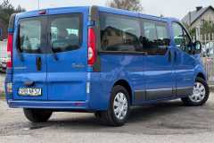 Dane techniczne:- Marka: Renault- Model: Trafic- Generacja: II- Rok produkcji: 2011- Przebieg: 568 127 km- Pojemność silnika: 1995 cm3 (2.0 dCi)- Moc: 114 KM- Rodzaj paliwa: Diesel- Skrzynia biegów: manualna- Napęd: na przednie koła- Liczba miejsc: 9- Liczba drzwi: 4- Typ nadwozia: bus osobowy- Wersja: LONG- Kolor: niebieski